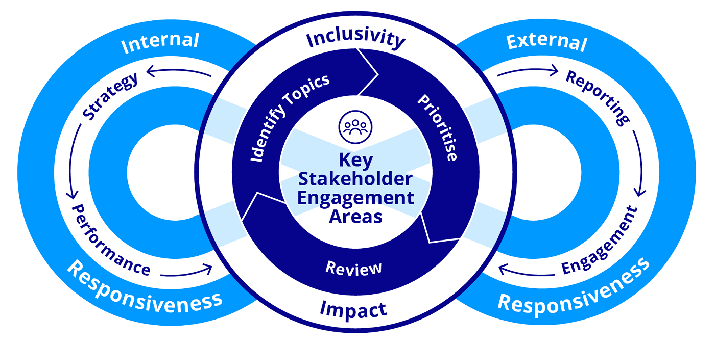 We use a structured five-step approach to stakeholder engagement. This ensures we identify the right stakeholders, plan meaningful interactions, execute inclusive engagements, integrate feedback into our decisions, and continuously monitor and improve our efforts.
