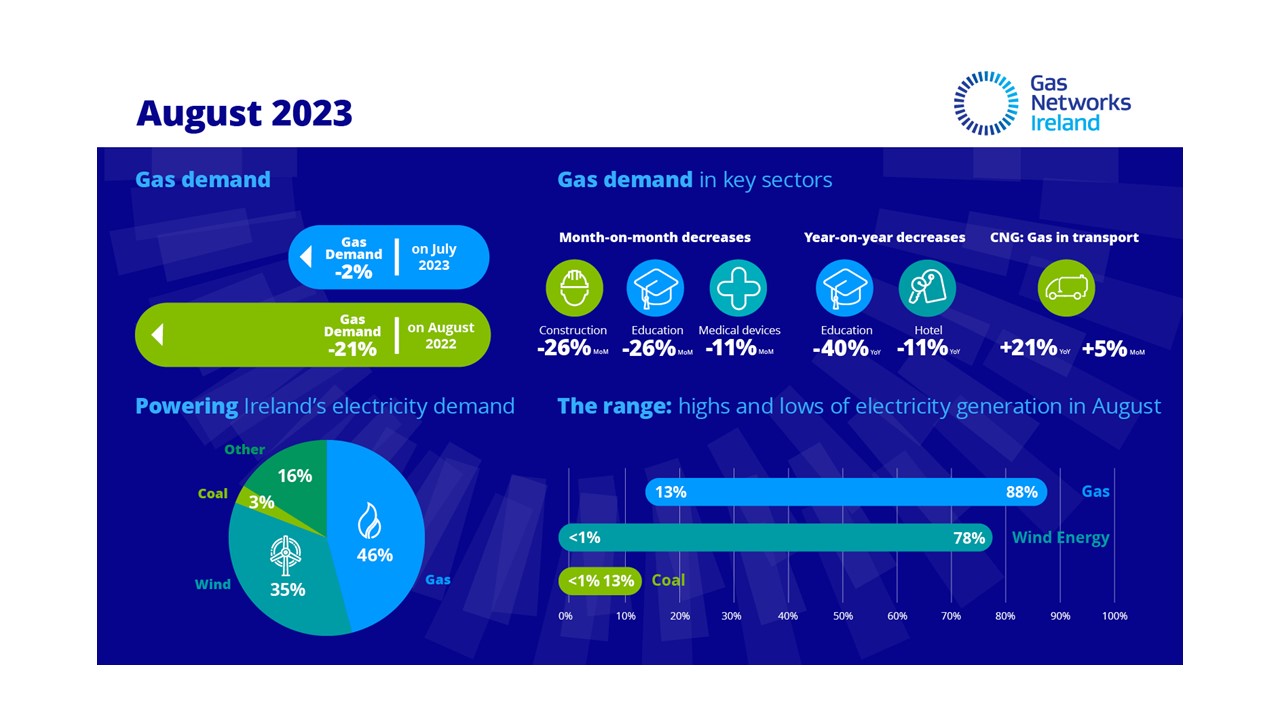 In a mild and changeable August, gas demand dropped by 2% on July and fell by 21% when compared to August last year.