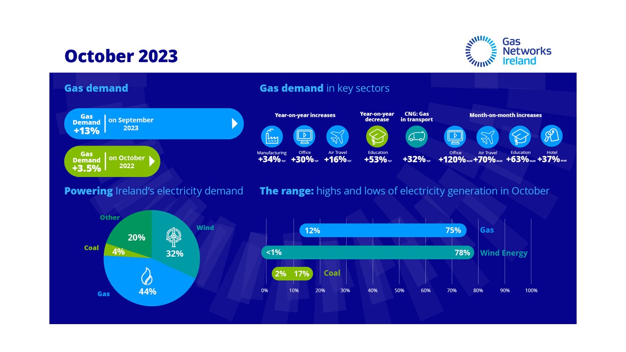 A mild yet very wet October saw Ireland's gas demand increase by 13% on the previous month, with a 3.5% rise on the same month last year.
