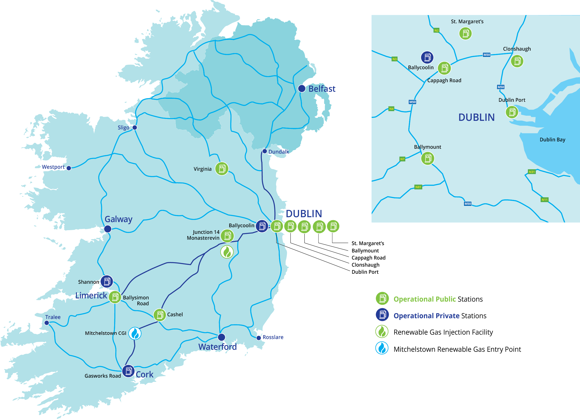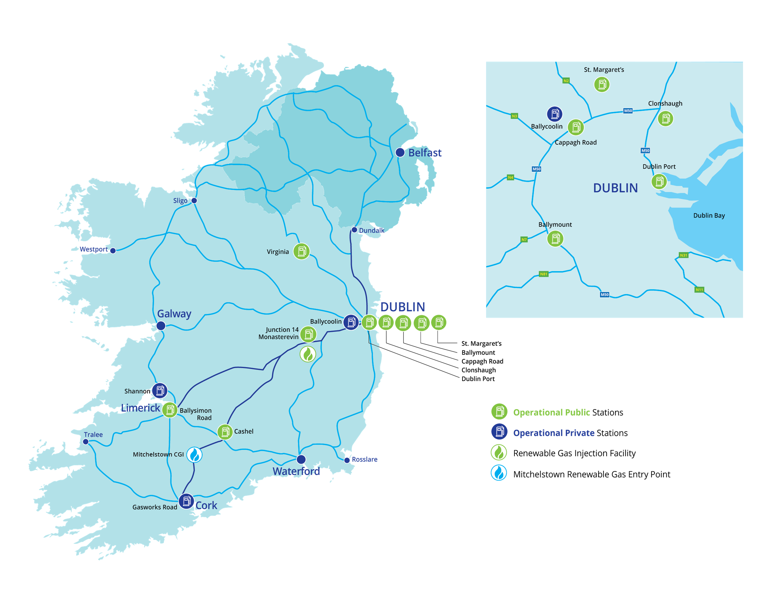 Under the Causeway and Green Connect projects, in addition to facilitating the rollout of a network of public CNG refuelling forecourts, we are supporting the delivery of multiple private stations for customers that wish to refuel on their own premises. To achieve this, we will continue to build partnerships with some of Ireland's most prominent and well-known forecourt operators and haulage companies.